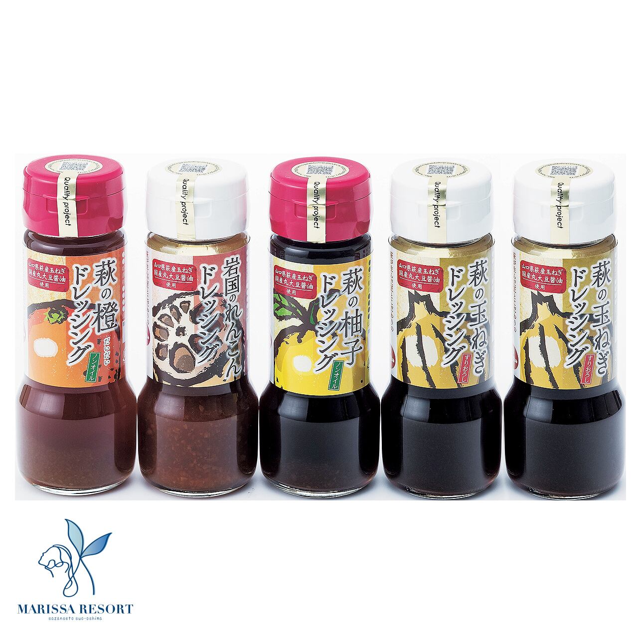 萩の玉ねぎドレッシング150ml×2本、萩の柚子ドレッシング・萩の橙ドレッシング・岩国のれんこんドレッシング各150ml×1本