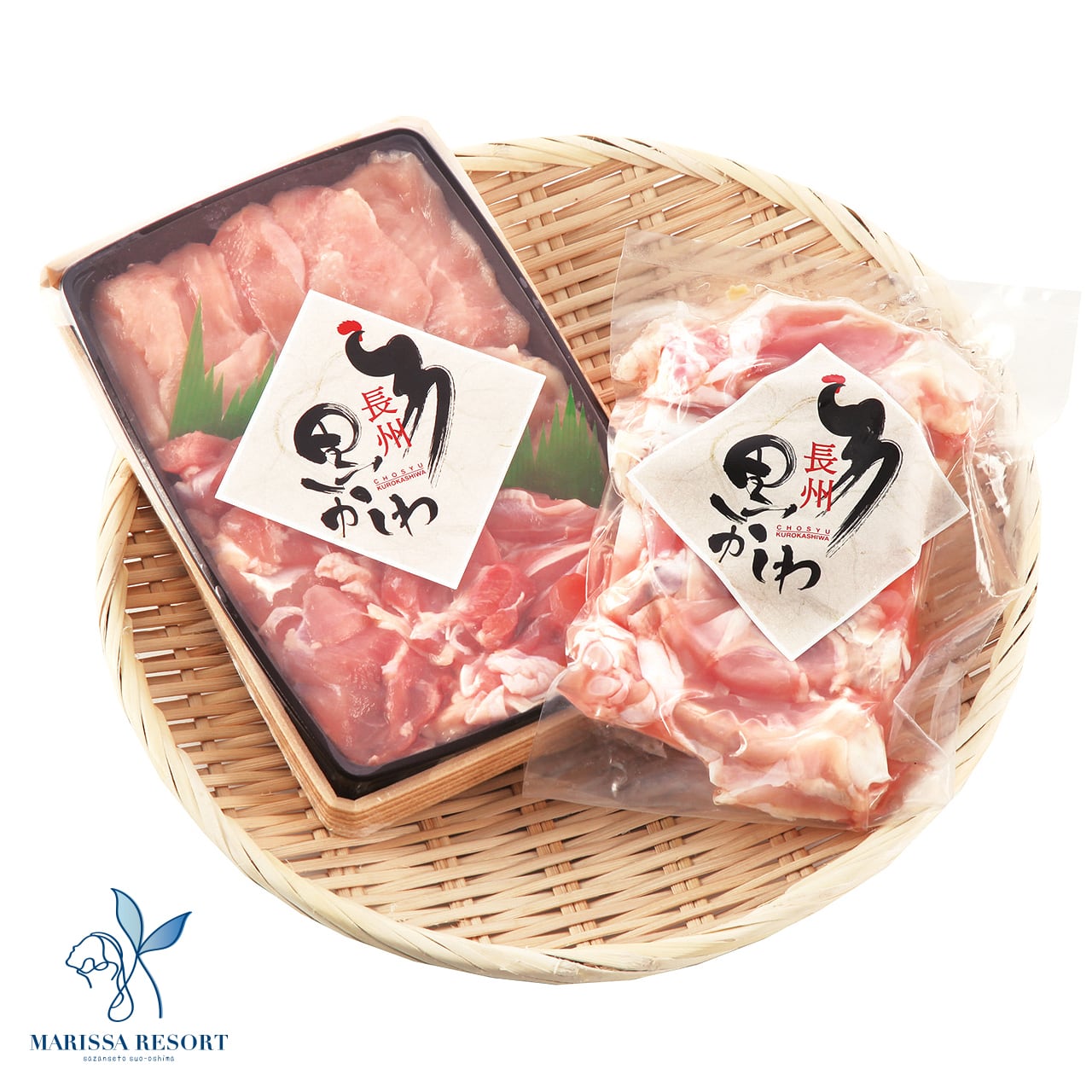 長州黒かしわもも・むね切身250g×2、長州黒かしわ手羽もと170g(4本)、長州黒かしわスープ100g×2