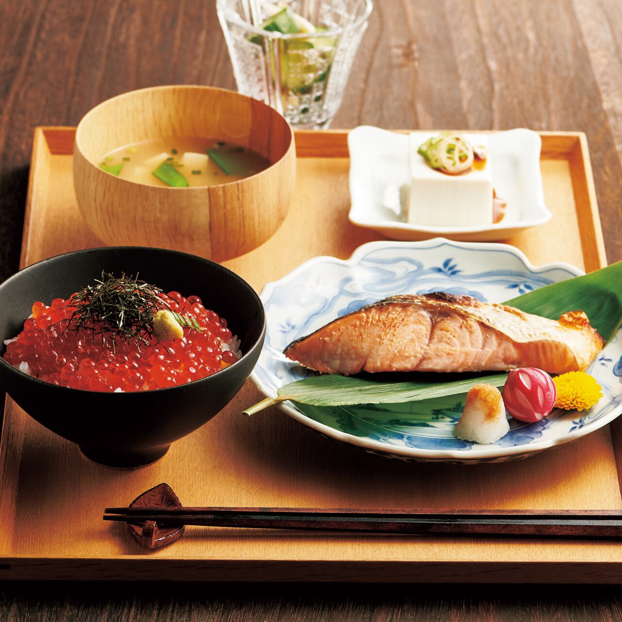 9月~11月に北海道沿岸で定置網漁法で水揚げされた秋鮭を厳選し、甘塩に仕上げた銀毛の新巻鮭と、同じく旬に獲ってすぐさま味付けしたいくら醤油漬。鮭は切身にカット済みで、保存に便利な二分割真空状態でお届けします。