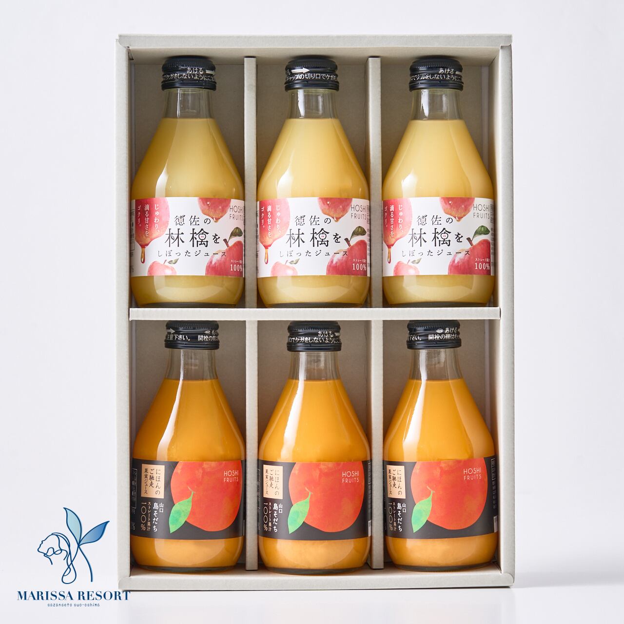 山口島そだち(蜜柑)×3本、徳佐の林檎をしぼったジュース×3本、各180ml